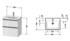 Duravit D-Neo – Wastafelonderkast Met Wastafel, 634x625x452 Mm, 2 Laden, Mat Wit DE012001818