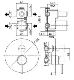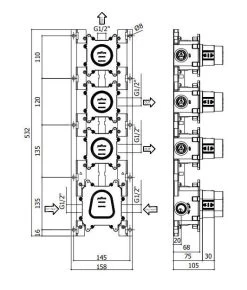 Paffoni Compact Box – Thermostatische Inbouwkraan, Voor 3 Uitgangen, Geborsteld Goud CPT019HGSP