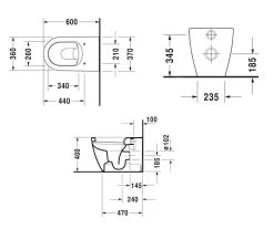 Duravit DuraStyle – Wandcloset, Voor Gehandicapten, Rimless, Met WonderGliss, Alpine Wit 25590900001