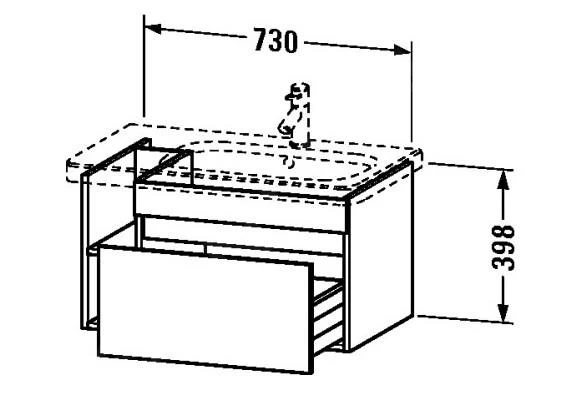 - 1 lade, handgreep geïntegreerd in corpus van de kast, in de kleur van de corpus