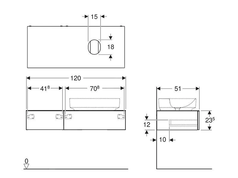 - de wastafel kan links of rechts worden gemonteerd