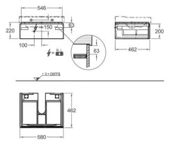 - afmetingen kastje: 58 x 22 x 46,2 cm (bxhxd)