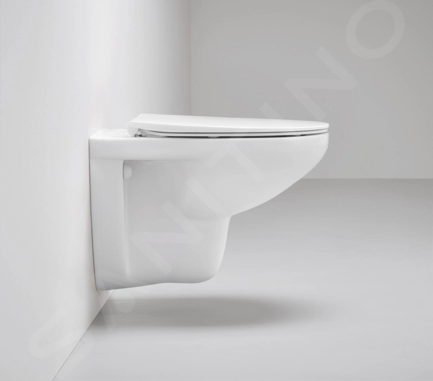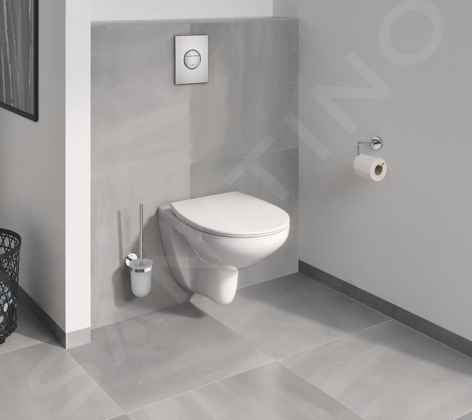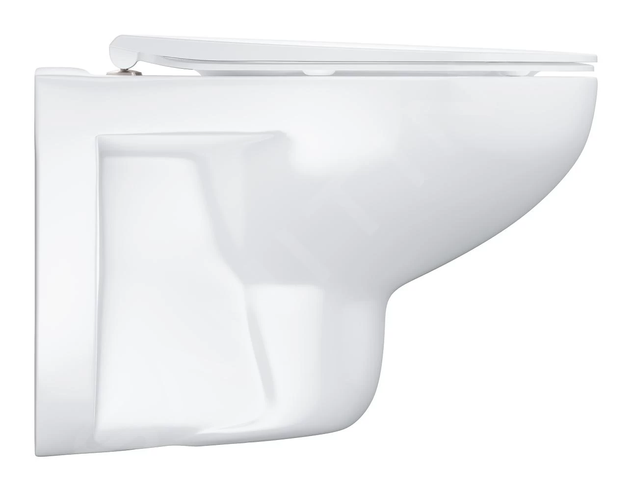 Ontdek dit hangtoilet van GROHE met nauwkeurig en simpel design uit de Bau Ceramic collectie. Dankzij de simpele, ronde lijnen zal het naadloos passen bij elke ruimte. Dit hangend toilet is ontworpen zonder spoelrand en is gemaakt van hoogwaardig geglazuurd keramiek. Het oppervlak van het toilet is daardoor perfect glad en goed bestand tegen extreme belastingen. Het GROHE Bau Ceramic toilet heeft een spoelcapaciteit van 3 liter en 5 liter. Het toilet is bovenop voorzien van een compatibele, ultradunne en gemakkelijk verwijderbare toiletzitting met de SoftClose-functie.