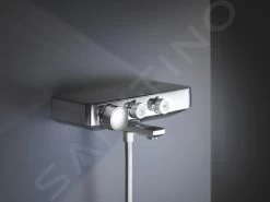 Geniet van een comfortabele, betrouwbare en veilige douche of bad dankzij deze wandgemonteerde thermostatische badmengkraan. De kraan meesterlijk combineert alle moderne functionaliteiten in de tijdloze chroom afwerking. Voor de schitterende oppervlaken zorgt de GROHE StarLight beschermlaag. Hierdoor is de kraan jarenlang krasvrij en onderhoudsvriendelijk. Voor de veiligheid zorgt een aantal geweldige functies. De GROHE CoolTouch houdt de oppervlakken altijd aangenaam koel. De GROHE SafeStop veiligheidsstop begrensd de watertemperatuur op 38°C of op 43°C, in het geval van de optionele GROHE SafeStop Plus temperatuurbegrenzer. Voor meer genot zorgt de GROHE EcoJoy functie, die het waterverbruik vermindert zonder aan prestaties in te leveren.