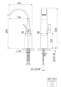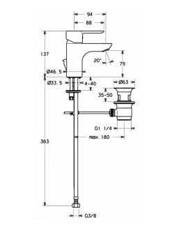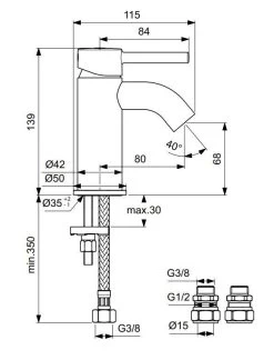- bediening: knopbediening: de greep bevindt zich direct op de kraanuitloop