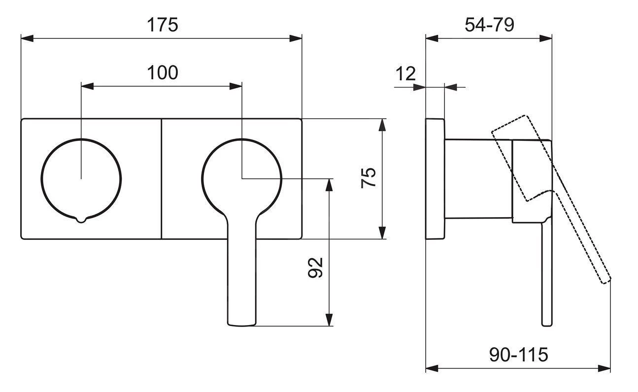 - wanddouchebocht G 1/2, voor het aansluiten van een handdouche