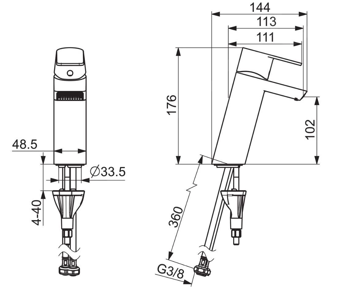 - keramische cartouche 40 mm, voor regulering van debiet en -temperatuur