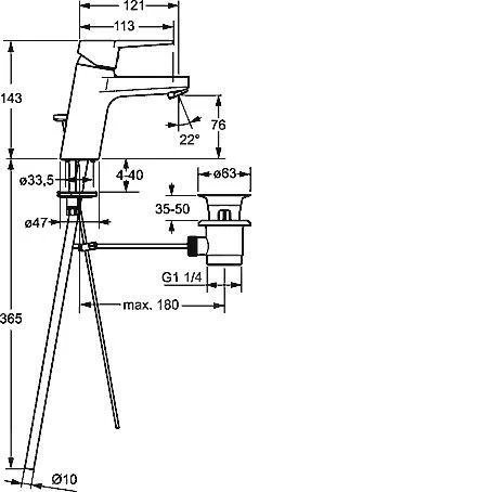 | Voorsprong uitloop [mm] | 113 |