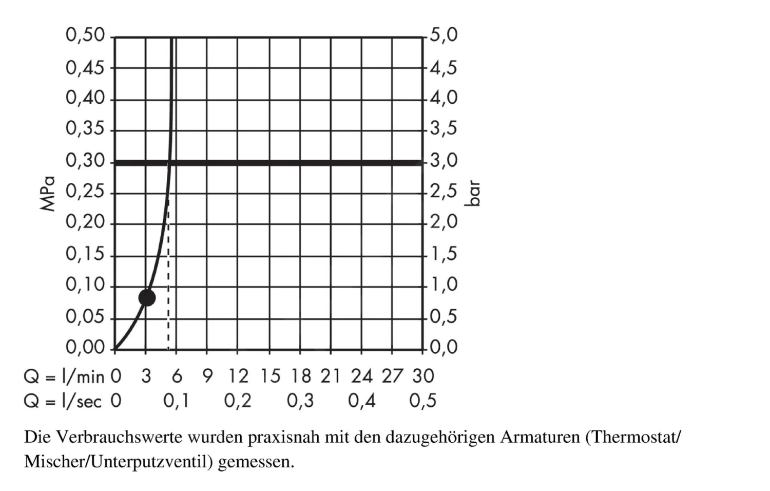 - maximale doorstroming (bij 0,3 MPa): 5,7 l/min