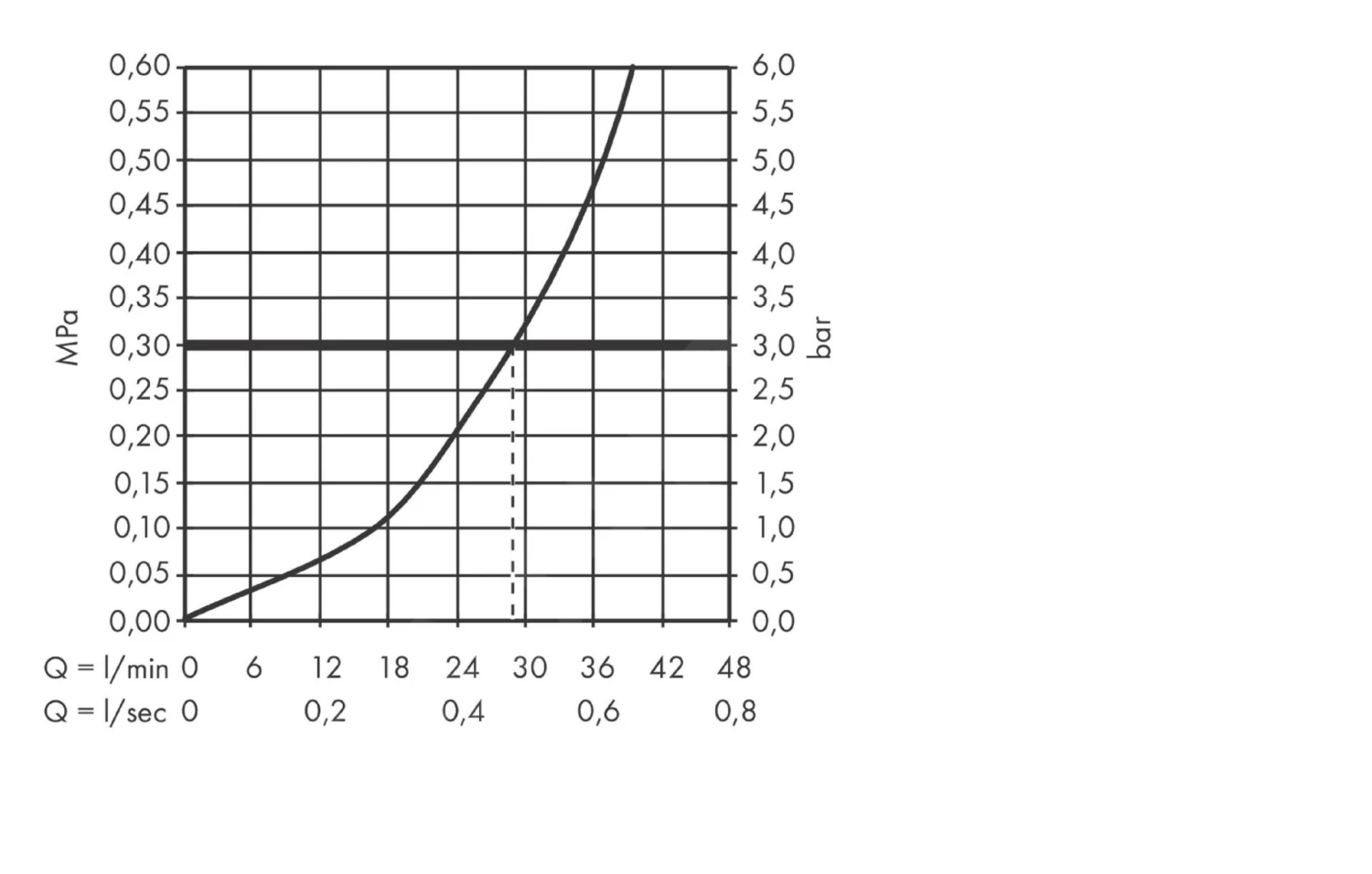 - maximaal debiet bij 0,3 MPa: 29,3 l/min