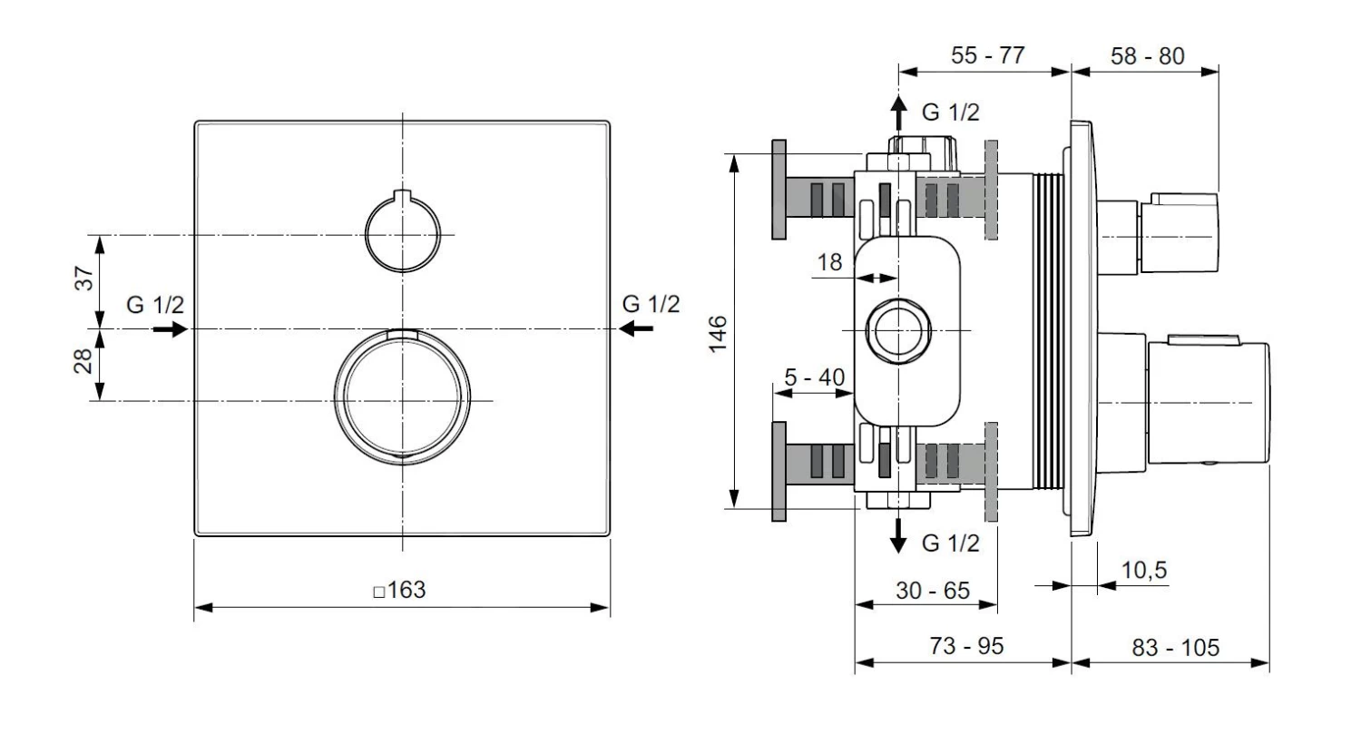 Thermostatische inbouw douchekraan zonder inbouwdeel