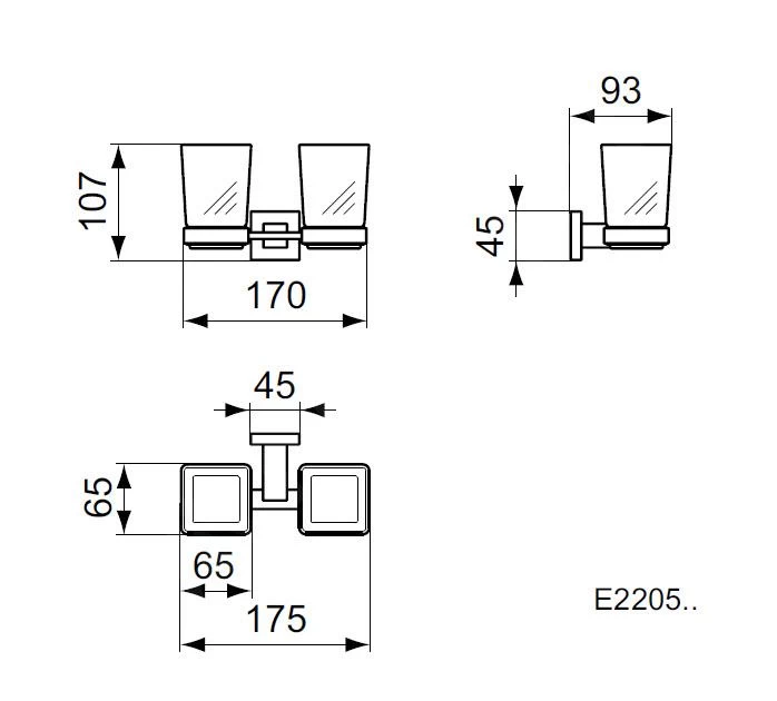 Sapho X-Round – Glashouder Dubbel Met Houder, Glas/chroom XR902