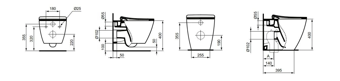 Set van wandcloset en closetzitting
