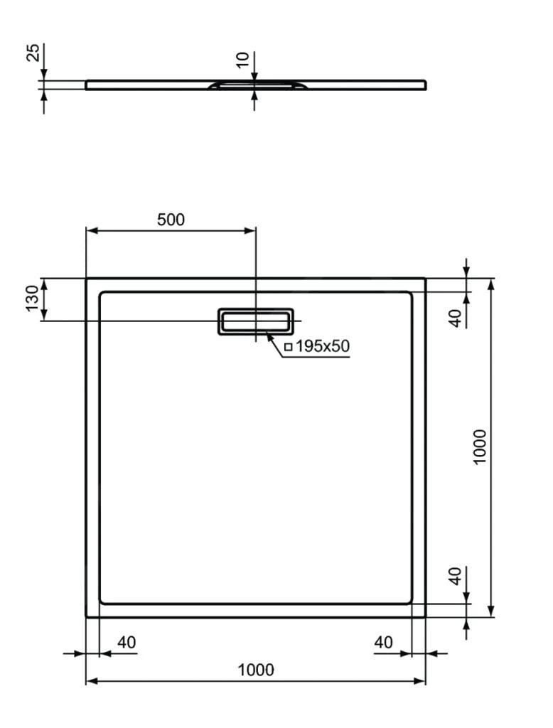 - afmetingen: 1000 x 1000 x 25 mm (BxDxH)
