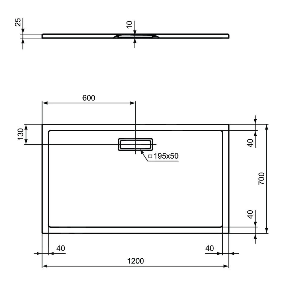 - afmetingen: 1200 x 700 x 25 mm (BxDxH)