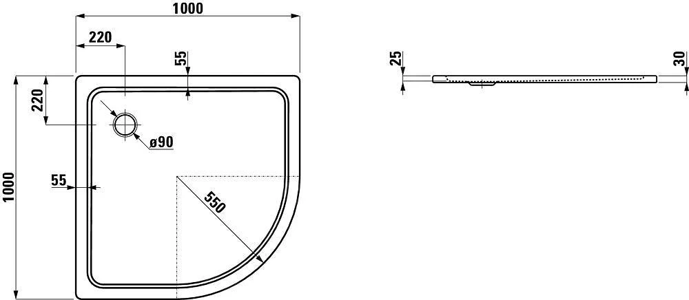 Kwartronde douchebak met antislipbescherming