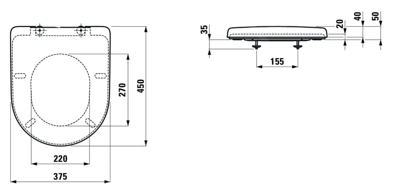 Universal wc-bril met deksel, met langzaam sluitmechanisme