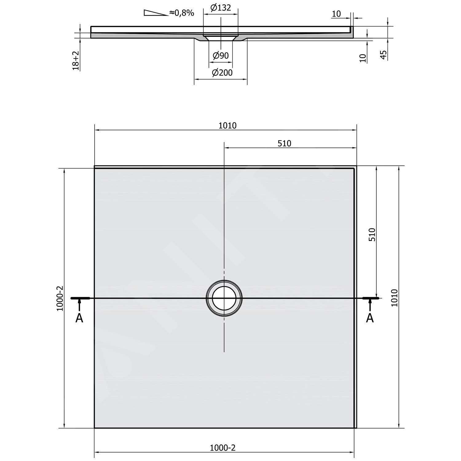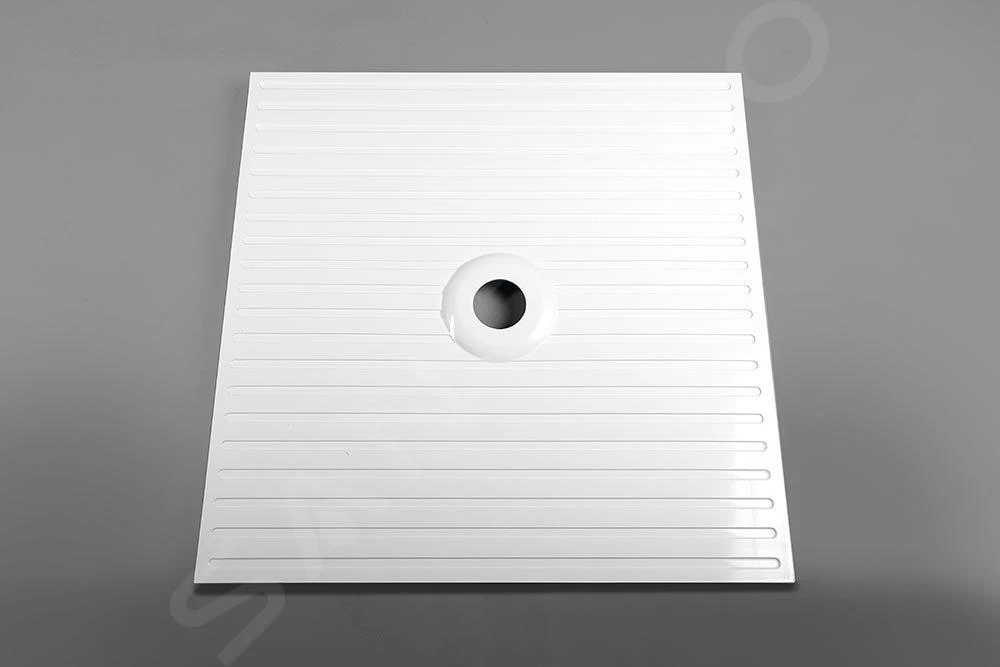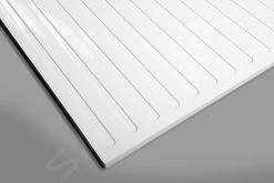- dankzij de groeven aan de onderkant kan de douchebak rechtstreeks op de vloer worden gelijmd