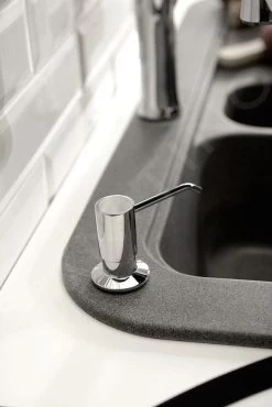 - inbouw zeepdispenser kan in wastafel geïnstalleerd worden in de plaats van een staande kraan, of in het werkblad naast de wastafel of spoelbak